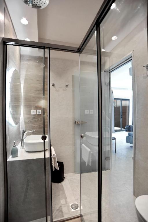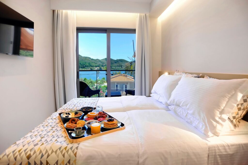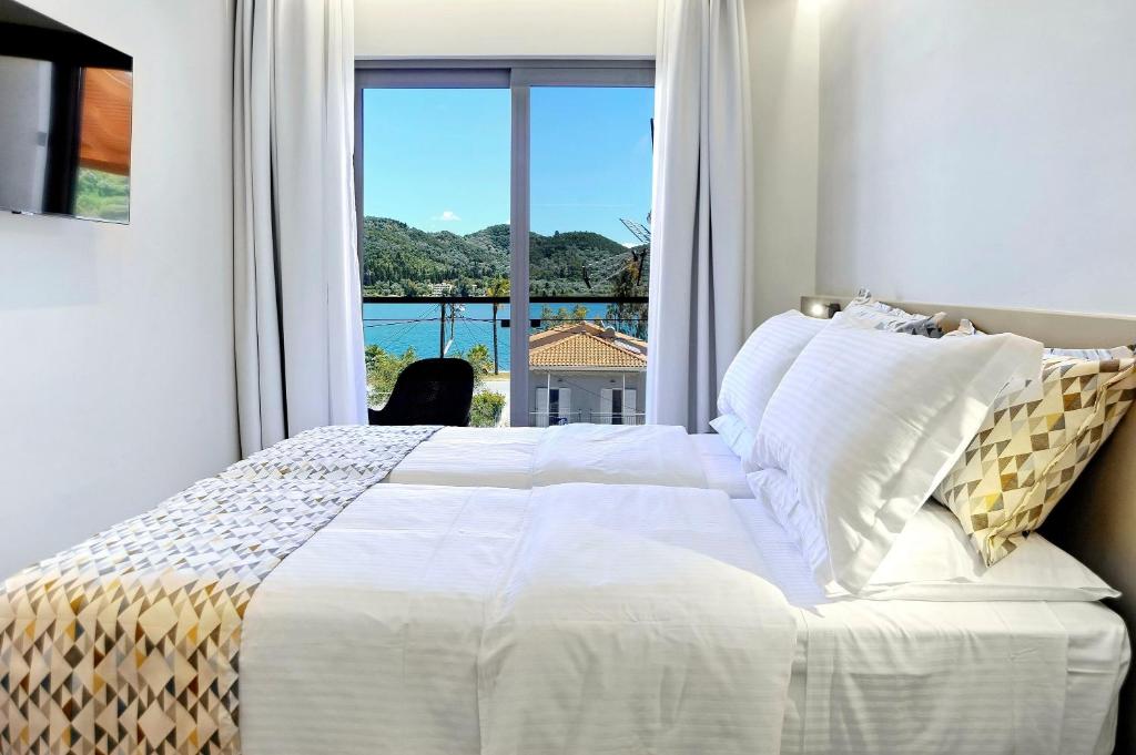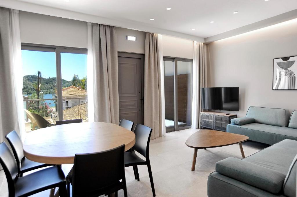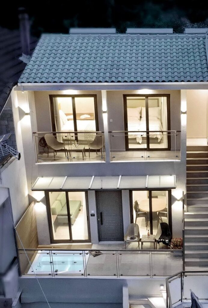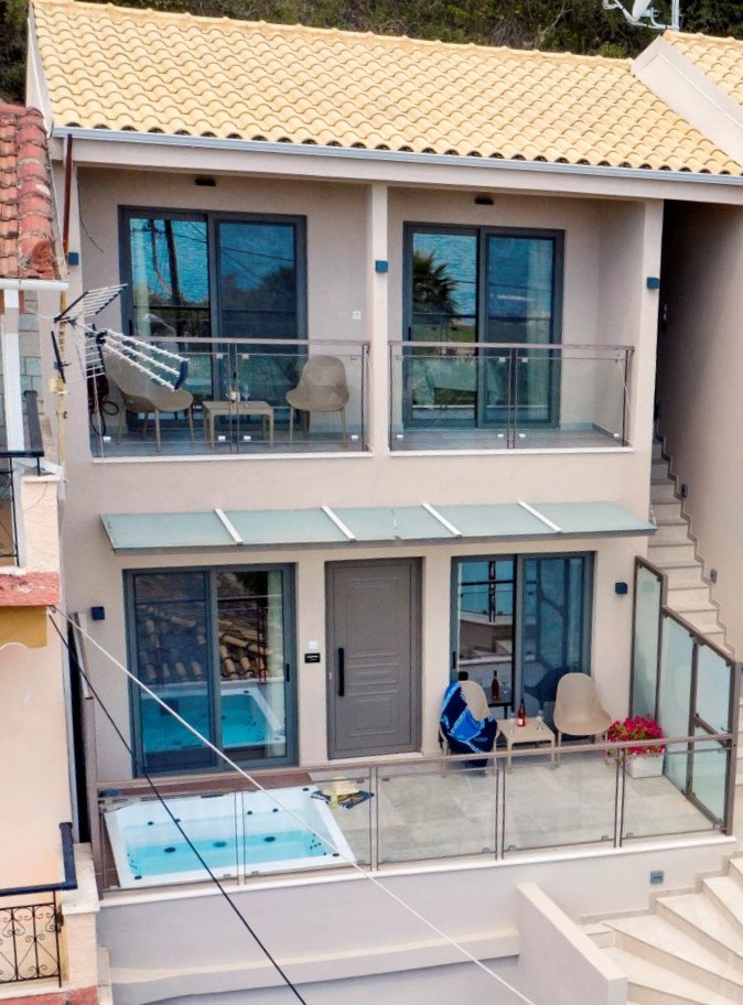 Christina Suite is a brand new luxury suite with 2 floors. The suite is luxurious and has all the necessary amenities to make your vacation a unique experience .At the first floor it’s the living room including a flat screen tv , A/C and two sofa -beds where they can sleep 2 guests . The kitchen is fully equipped to prepare your meals. On the first floor there are 2 bedrooms with 2 double beds that can accommodate 4 guests and one bathroom On the base floor there is another bedroom with a double bed and a bathroom for 2 guests. Each bedroom has A/C and its own flat screen tv. There is also a balcony that offers an amazing view of Vlicho bay. The suite has a jacuzzi to offer moments of relaxation for you and your family.