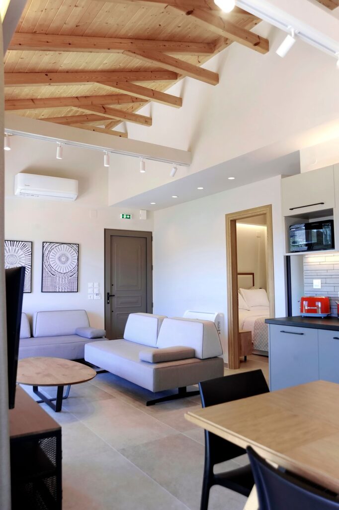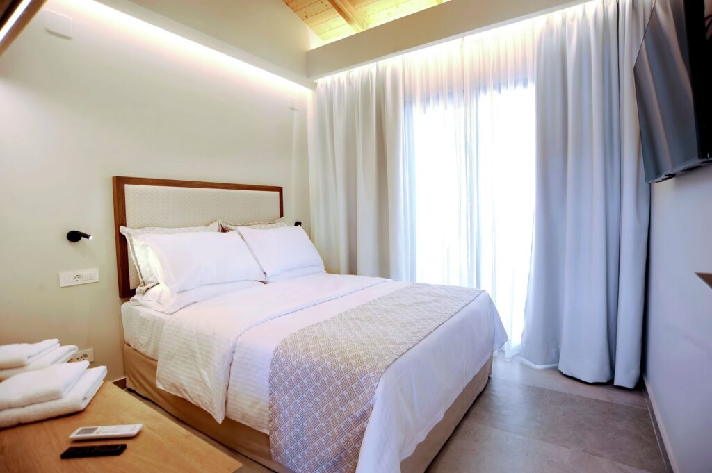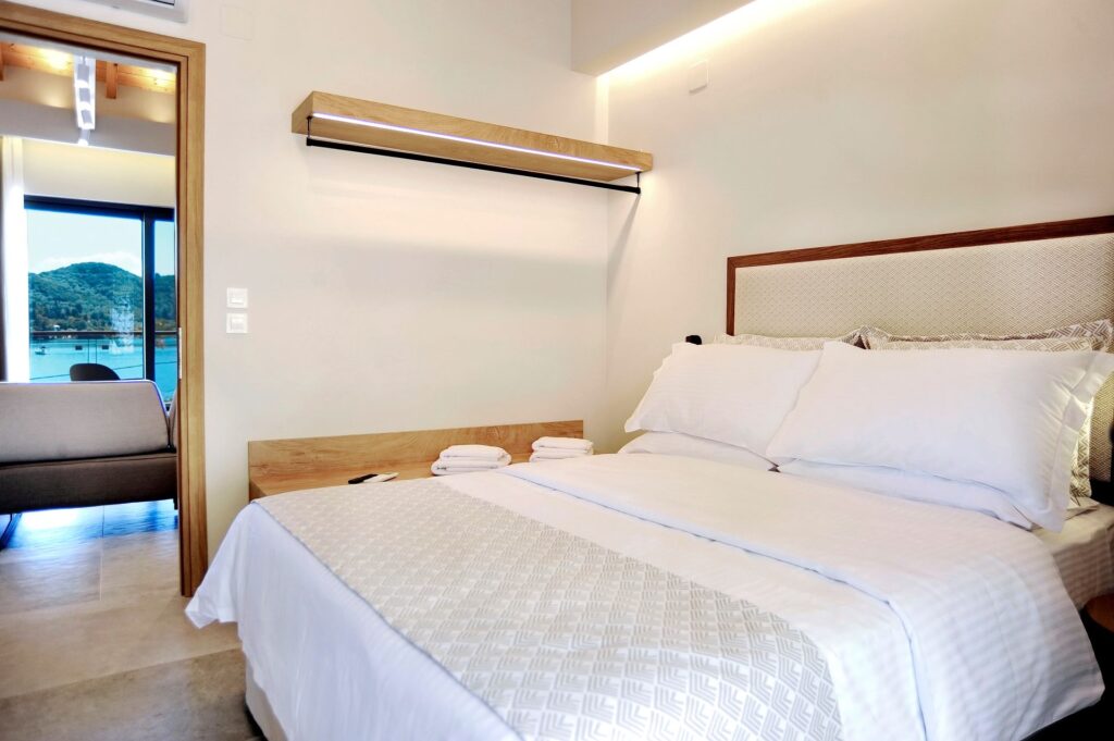 Suite Demy is located on the first floor of the building. The superior suite with 2 bedrooms, with double beds, A/C and flat screen Tv each one , can accommodate up to 6 people. You can have a pleasant moment of relaxation in the spacious living room and enjoy the magnificent view of the Geni gulf. The suite provides a bathroom with shower, fully equipped kitchen, free Wifi in the whole area, A/C, flat screen TV and all the amenities to make your vacation a unique experience.