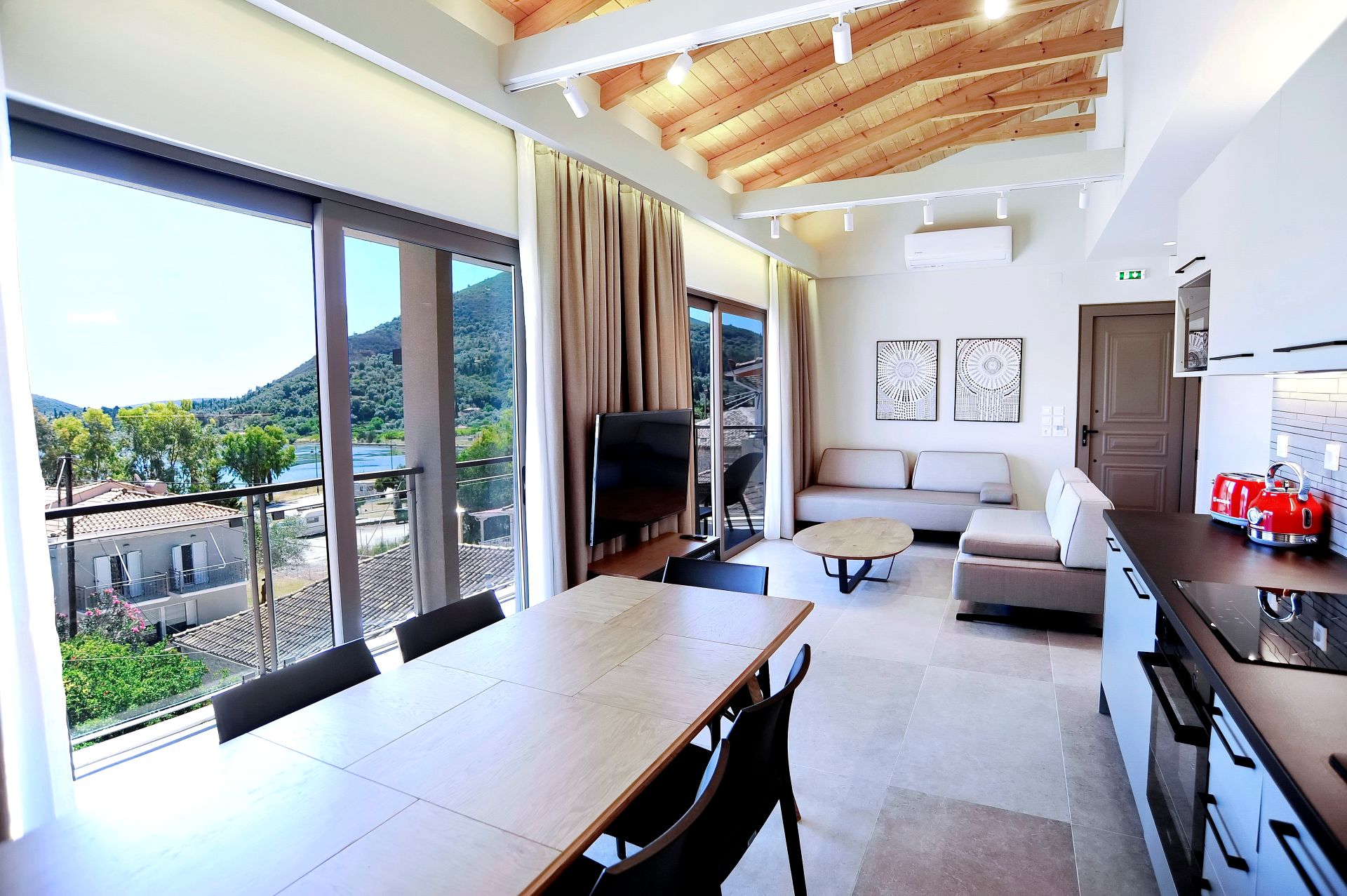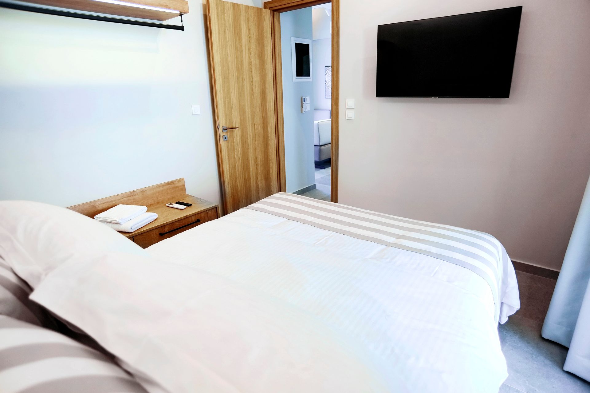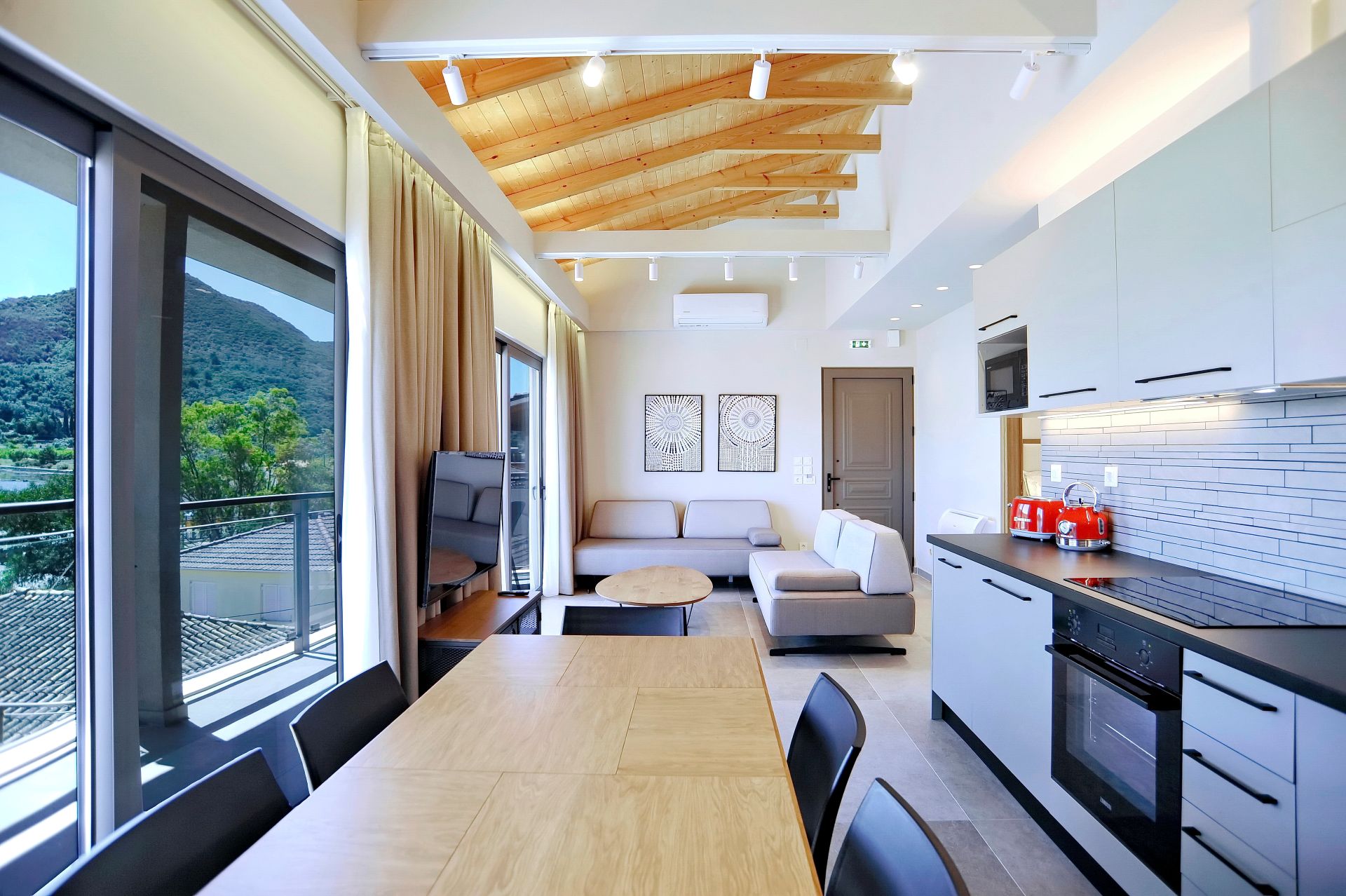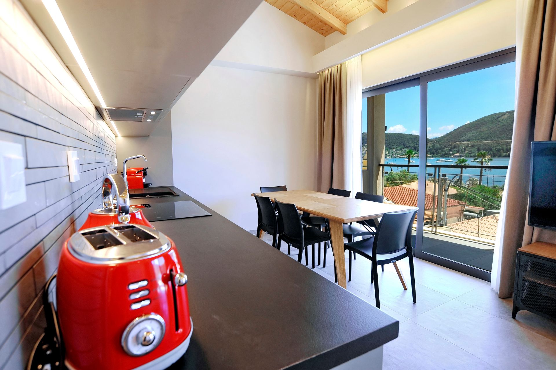 Suite Demy is located on the first floor of the building. The superior suite with 2 bedrooms, with double beds, A/C and flat screen Tv each one , can accommodate up to 6 people. You can have a pleasant moment of relaxation in the spacious living room and enjoy the magnificent view of the Geni gulf. The suite provides a bathroom with shower, fully equipped kitchen, free Wifi in the whole area, A/C, flat screen TV and all the amenities to make your vacation a unique experience.
