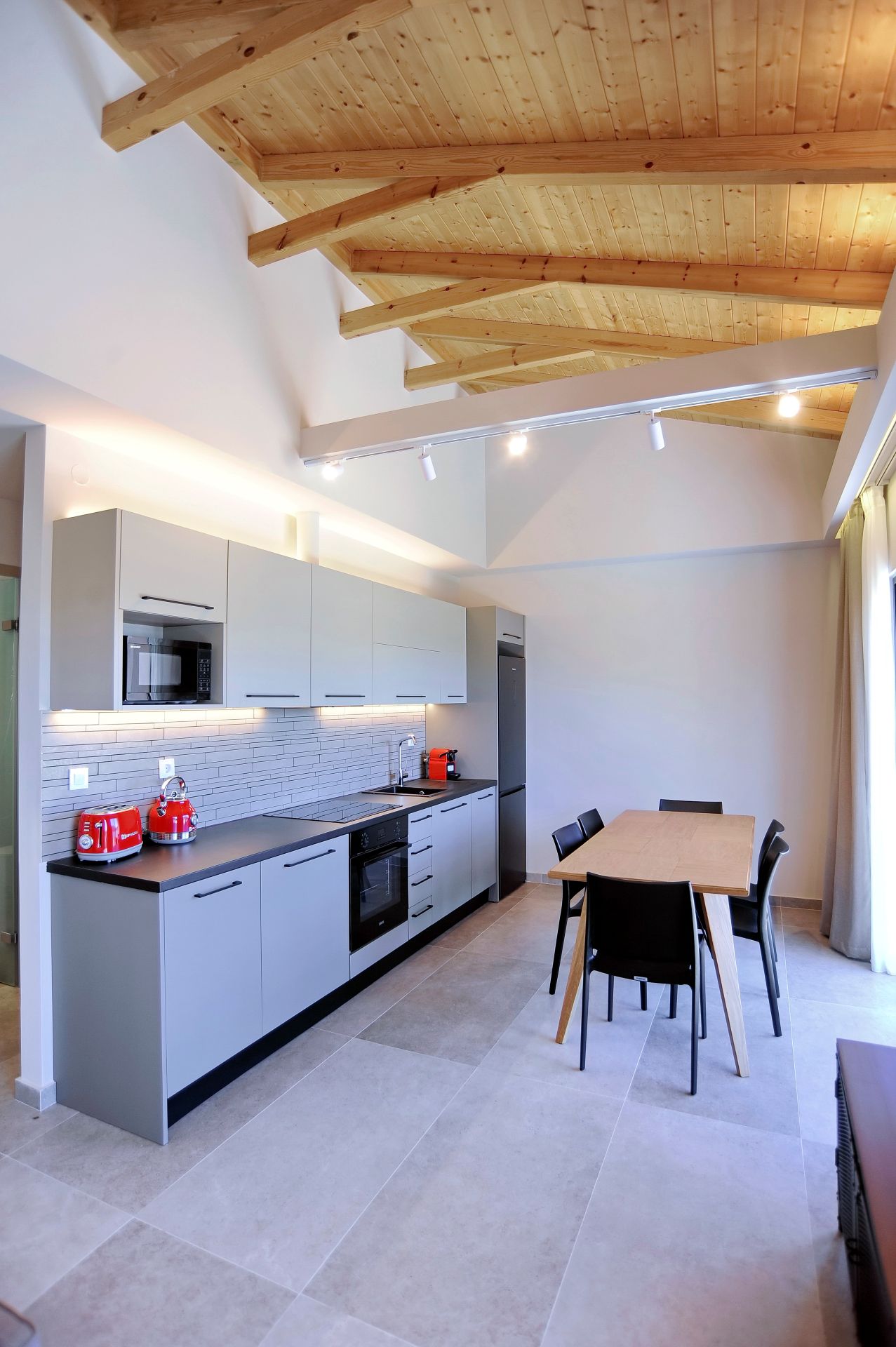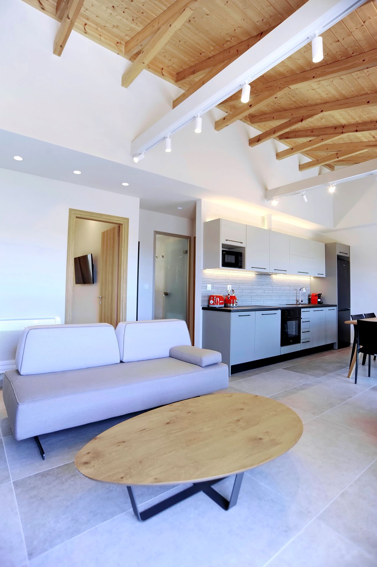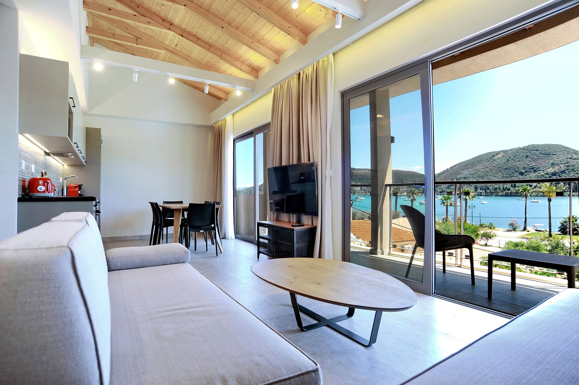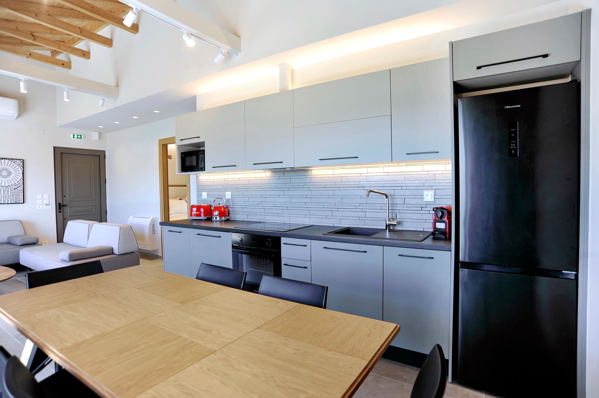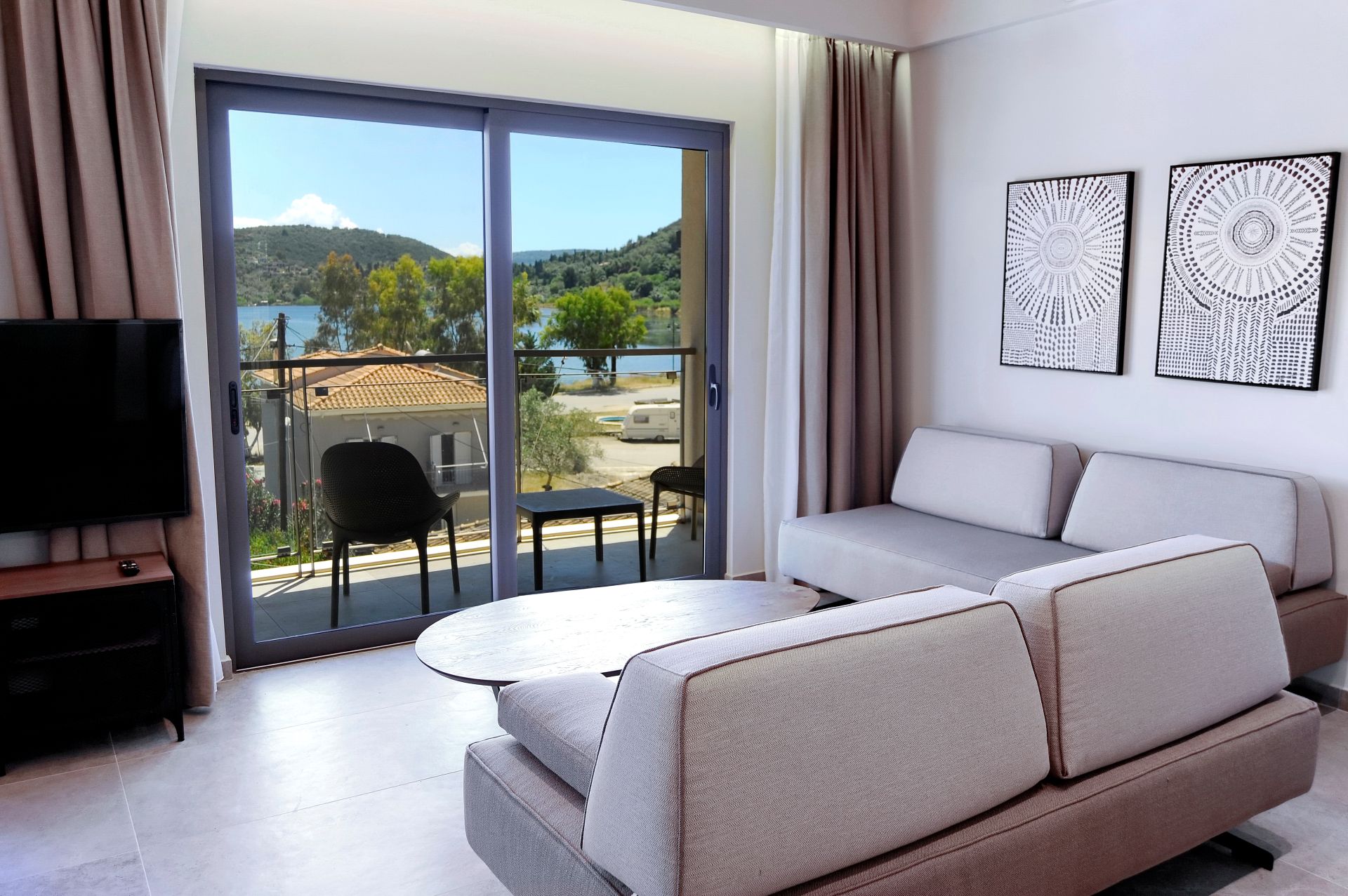 Suite Demy is located on the first floor of the building. The superior suite with 2 bedrooms, with double beds, A/C and flat screen Tv each one , can accommodate up to 6 people. You can have a pleasant moment of relaxation in the spacious living room and enjoy the magnificent view of the Geni gulf. The suite provides a bathroom with shower, fully equipped kitchen, free Wifi in the whole area, A/C, flat screen TV and all the amenities to make your vacation a unique experience.